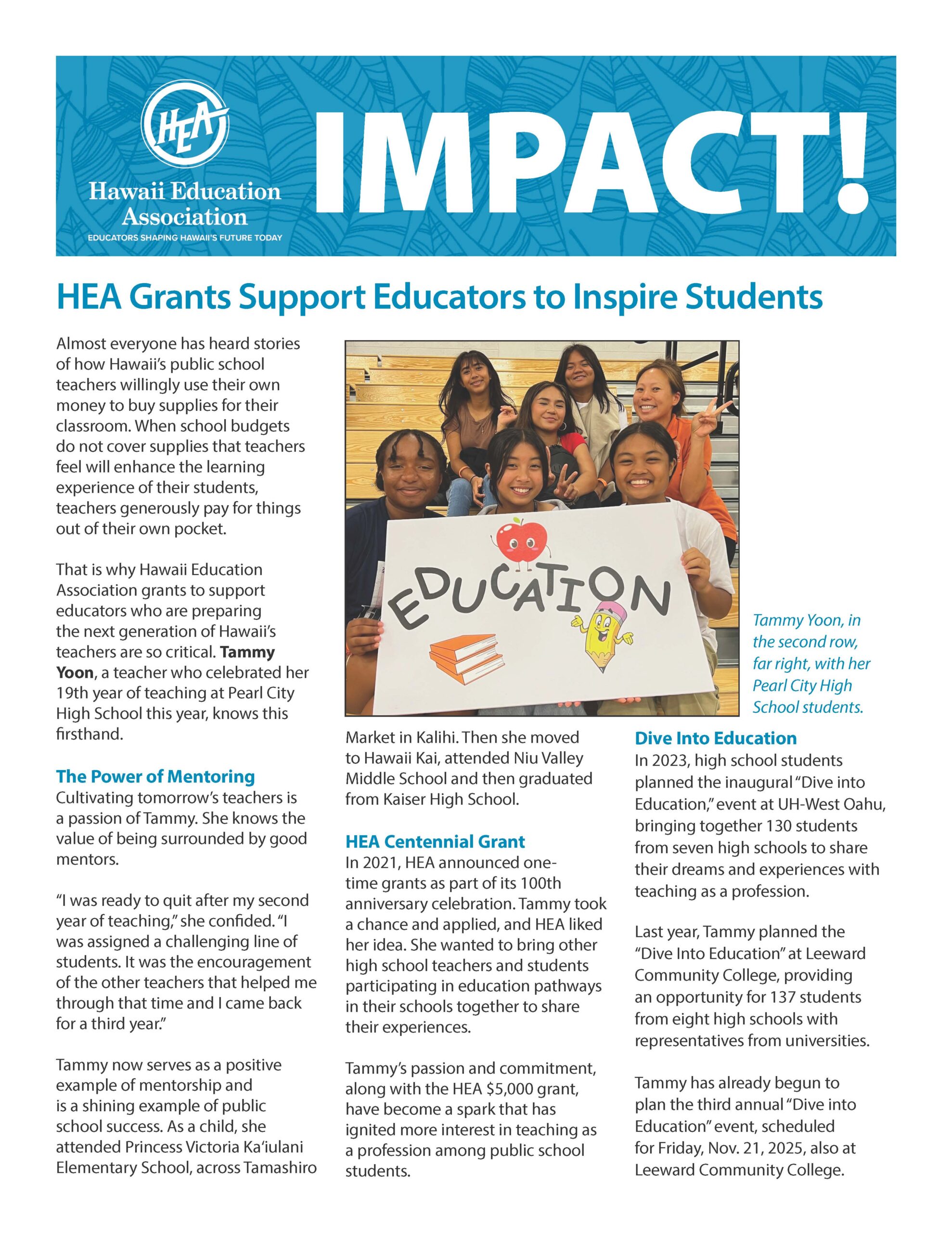 Your support directly enables HEA to fund, connect, mentor and inspire current and future Hawaii teachers to be the best that they can be and makes an impact on education.