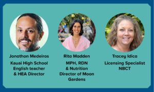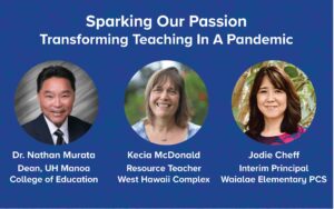 The first event in HEA’s centennial year was a statewide convening of educators to celebrate connections for sharing creative ideas, which we called HEA Hallway Chats. Presenters included Dr. Nathan Murata, Dean of the College of Education at the University of Hawaii at Manoa, stressing the importance of movement; Kecia McDonald, Department of Education resource teacher in the West Hawaii complex, who shared how she stayed connected with other educators around the world during the pandemic; and Jodie Cheff, Interim Head of School at Waialae Elementary Public Charter School, who shared how her school supported learning for students and families during COVID, in particular by creating moveable study desks that could be used outside on campus for social distanced groupings or at home.