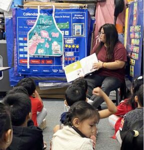 Farrington High School seniors prepared an interactive reading lesson, called the Apron Story project, for elementary school students. This work-based learning project fulfilled their requirement to serve as interns as a teacher aide. Teacher cadets (seniors) choose a book that is age appropriate for their classroom, decorate an apron with paint and accessories that match the story. The cadets also created prompts based on the book that the elementary students attach to the apron as the story unfolds. Teacher Cadets learned how to turn a reading session into an interactive class assignment where young learners are actively engaged in the reading process. Cadets also learned how to deliver a reading lesson in front of real learners face to face in a work- based learning environment. Cadets learned how to use creativity to turn any story or fairy tale into an interactive and engaging lesson, and always returned from their assignment with big smiles on their faces.