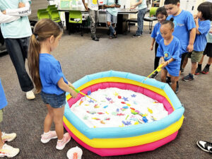 With their HEA grant, the Leilehua High School’s Foundations of Education class purchased supplies for the activities they designed for the Iliahi Elementary School kindergarteners. The students were able to read Dr. Seuss books to the children and accompany the book reading with a fun activity. One group read “One Fish, Two Fish, Red Fish, Blue Fish” and had the children compete in a relay race fishing competition. It was a great learning opportunity for the education students. They enjoyed working with the children and learned that it is essential for them to create lesson plans that are detailed and also have a back-up plan in case the original plan does not work.